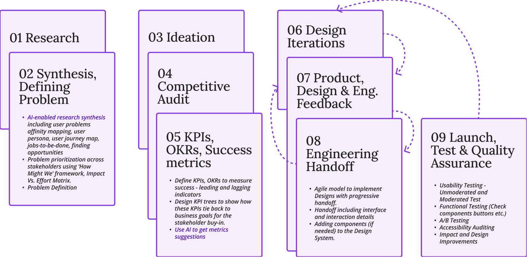 Translate complex concepts into tangible outcomes, securing stakeholder buy-in through a clear, systematic design process.
